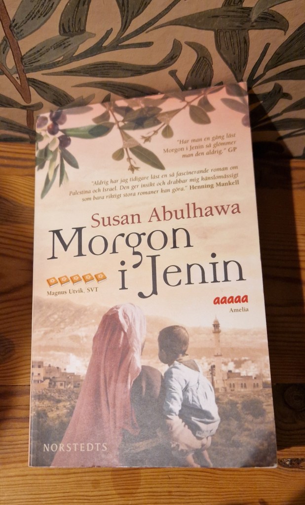 En väldigt bra bok, skriven rakt upp och ner, om Palestinas historia, med början i flyktinglägret i Jenin 1967. En flickas längtan blandas med avlopp som går sönder och makaber död. Huvudpersonen Amals far, blir skjuten och det gör obeskrivligt ont. Amal saknar tiden på mornarna då hon kröp i hans knä och han läste poesi för henne. Amals moder, blir bestulen på ett barn, Ismael, som får ett öde som parallellt med familjens. Modern stänger ute allt och förlorar sig själv. Vi får följa historien om Amal och Palestina fram till 2002. Amal får studera i Jerusalem då hon blir föräldralös och får sedan ett stipendium att studera vidare i USA. Det är en fin och hemsk historia, som får med allt det mänskliga, kärlek, exil, terrorism, och rötter till ett land som stjäls. Fem bokmärken!