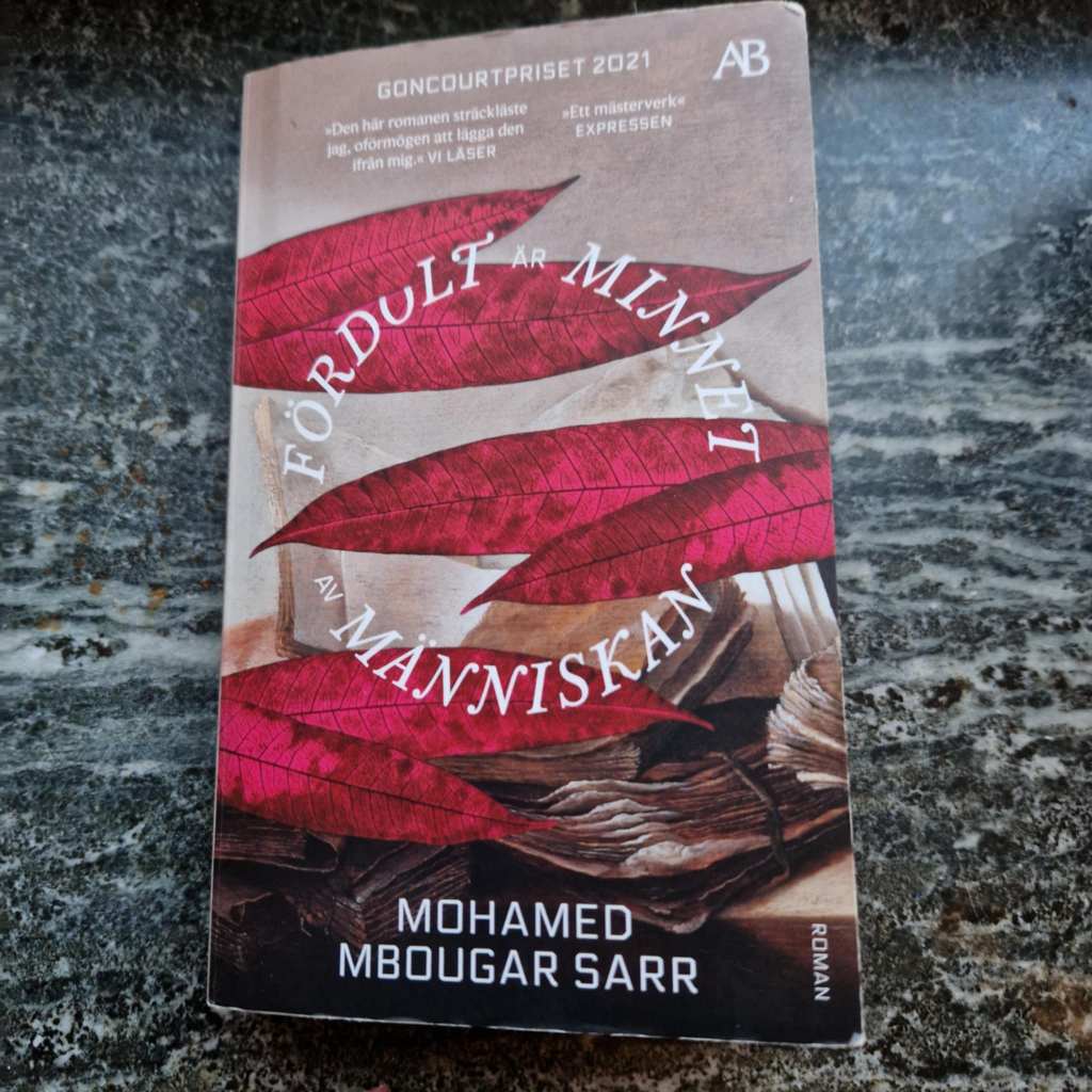 En spännande bok, som jag hittade intressanta textsjok och tankar i, som förde iväg mig till andra platser än bokens. Läste boken i skrivlokalen, på resa till Göteborg och bland katterna hemma. Det känns som om jag spretar lika mycket som boken, som handlar om en mystisk afrikansk författare vars bok huvudpersonen, Diégene Latyr Faye, letar efter. Boken är en holy grail, den är ett plagiat, en provokation, en kärlekshandling, ett andeprojekt där den som läser drabbas av olycka. Så många människor i den afrikanska diasporan letar efter författaren, har levt med honom och lämnat honom. Författaren är nästan viktigare än boken men vilket är egentligen syftet med boken i boken? Att hålla upp en skrattspegel mot kolonisatören? Att slingra sig ur alla försök till identitet också bland människor som älskar en? Det skeenden som Diégene och de andra författarna hamnar i belyser människors tankar om sig själva, historiska avgörande händelser, hur dessa påverkar människor och att det kanske inte finns några svar.